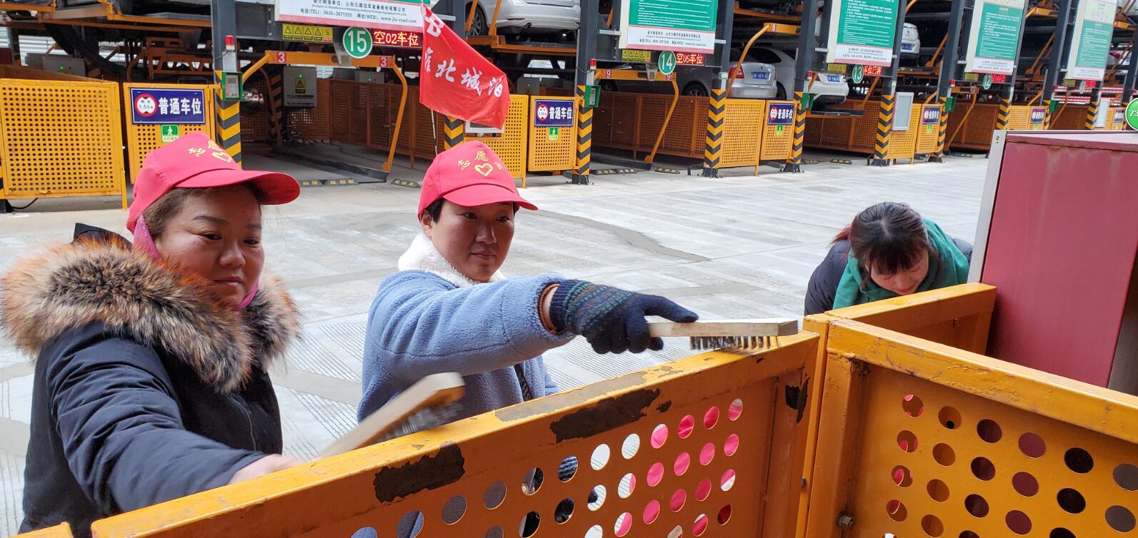 迎新春、換新顏——城泊支部組織黨員日清掃維護(hù)立體停車場