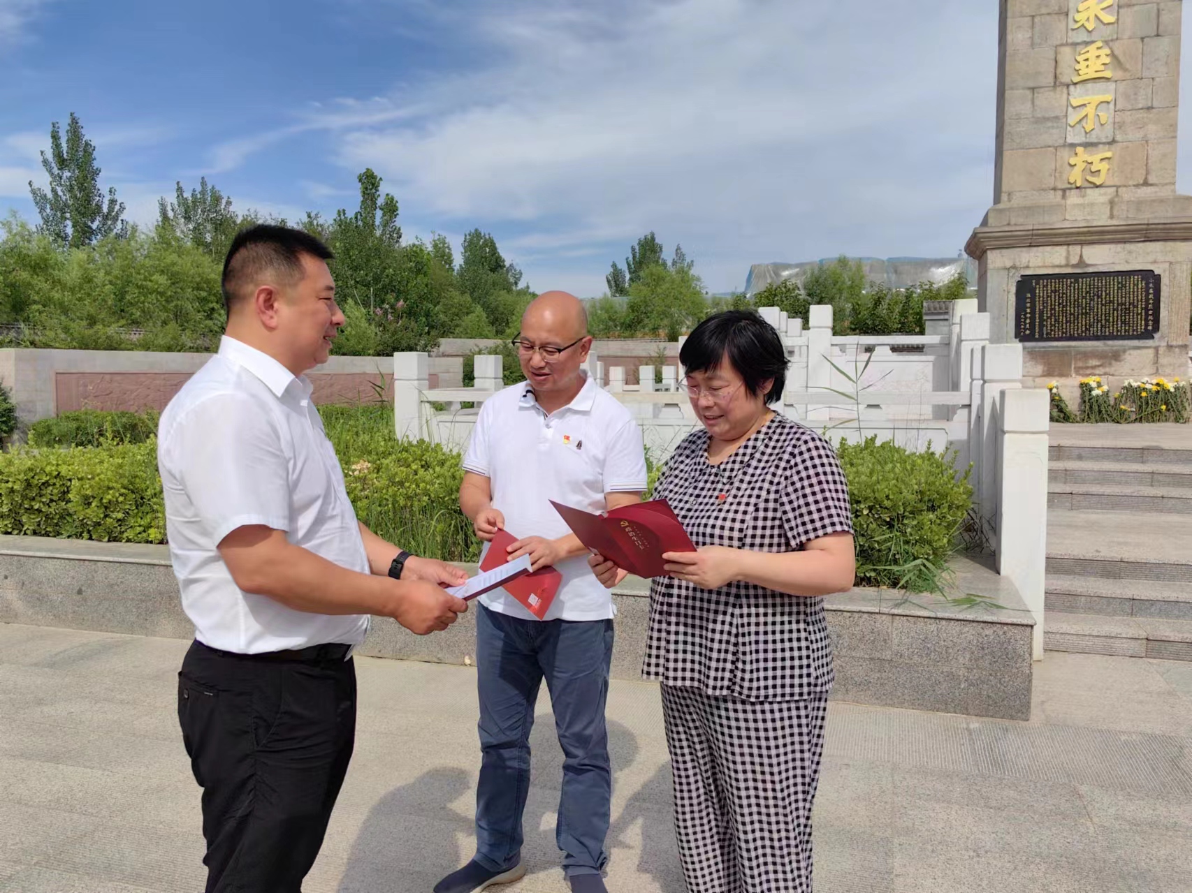 走入小朱莊戰(zhàn)斗烈士陵園,全體黨員詳細(xì)了解了眾多英烈的生平和事跡,駐足停留、認(rèn)真聆聽講解。在革命烈士紀(jì)念碑前,全體黨員靜靜肅立,向革命先烈鞠躬默哀三分鐘,全體黨員全場(chǎng)默哀告以哀思,依次向革命先烈敬鞠躬行禮并環(huán)繞革命烈士紀(jì)念碑慢步瞻仰一周,追憶英烈事跡。隨后,在小朱莊戰(zhàn)斗烈士紀(jì)念園內(nèi),全體黨員舉起右拳,重溫入黨誓詞,叩問初心使命,表示要牢記自己的職責(zé)和使命,不斷增強(qiáng)黨性修養(yǎng),始終保持共產(chǎn)黨員的先進(jìn)性和純潔性。最后,支部開展贈(zèng)書和集體過“政治生日”活動(dòng),幫助黨員筑牢信仰之基、補(bǔ)足精神之鈣、把穩(wěn)思想之舵,提升思想政治水平。