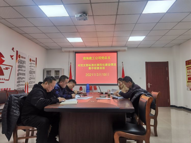 為認(rèn)真貫徹落實(shí)集團(tuán)公司黨委關(guān)于加強(qiáng)基層黨組織標(biāo)準(zhǔn)化建設(shè)有關(guān)精神,持續(xù)深入推進(jìn)基層黨組織標(biāo)準(zhǔn)化建設(shè),根據(jù)《關(guān)于開展 2020 年黨組織標(biāo)準(zhǔn)化建設(shè)評(píng)估工作的通知》要求,淮海建工黨總支于3月19日召開對(duì)黨支部標(biāo)準(zhǔn)化規(guī)范化建設(shè)情況集中檢查會(huì)議,會(huì)上對(duì)各支部的自查情況進(jìn)行核查,強(qiáng)調(diào)要以本次評(píng)估工作為契機(jī),結(jié)合黨史學(xué)習(xí)教育、“黨建融合提升年”等活動(dòng),全面檢視黨建工作,建立健全標(biāo)準(zhǔn)化規(guī)范化建設(shè)常態(tài)化推進(jìn)工作機(jī)制。