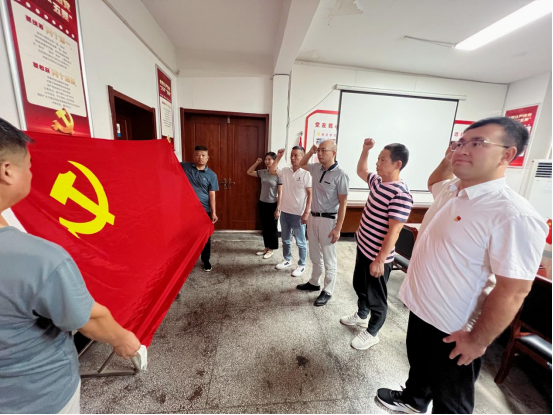 活動開始,全體人員集中觀看紀(jì)念中國人民抗日戰(zhàn)爭暨世界反法西斯戰(zhàn)爭勝利80周年大會。觀看過程中,大家保持安靜肅穆,認(rèn)真感受閱兵儀式所展現(xiàn)出的國家強大軍事力量和軍人昂揚風(fēng)貌,深刻體會到其背后蘊含的深厚愛國情懷與民族精神。整齊劃一的受閱方陣、先進(jìn)精良的武器裝備,讓全體黨員心靈受到極大震撼,自豪感油然而生。閱兵儀式結(jié)束后,全體黨員面向鮮紅的黨旗,莊嚴(yán)地重溫入黨誓詞。“我志愿加入中國共產(chǎn)黨,擁護(hù)黨的綱領(lǐng)……” 鏗鏘有力的誓言在會議室久久回蕩,字字千鈞,叩擊著每位黨員的心靈。這不僅是對初心使命的回溯,更是一次精神的淬煉與升華。