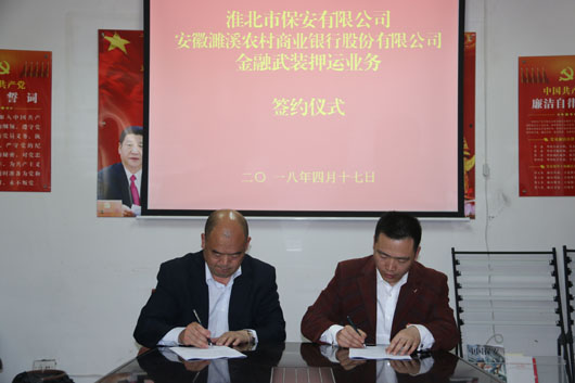 淮北市保安有限公司與安徽濉溪農(nóng)村商業(yè)銀行股份有限公司舉行金融武裝押運業(yè)務簽約儀式