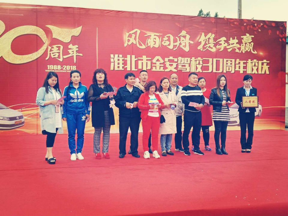 整個慶典彩旗招展、百花爭艷,歡聲笑語,工作人員與參加慶典的社會群眾共聚一堂,共同慶祝金安駕校30周年。首先,由淮北市交投公司副總經理張曉兵同志宣讀賀詞,對我校30周年的發(fā)展歷程當中的工作與貢獻作出了肯定,其次是金安駕校負責人陶夢秋同志致詞,對金安駕校全體員工的辛勤付出表示感謝。隨后是金安駕校全體員工精心編排的文藝演出,節(jié)目精彩紛呈,高潮迭起,最后四輪抽獎活動更是把現(xiàn)場的氣氛推向了高潮,整場慶典在火熱報名中圓滿結束。
