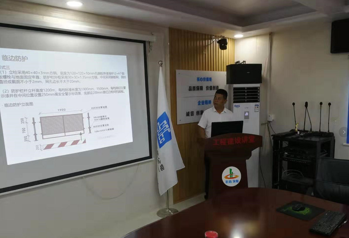 “施工安全是我們工程建設(shè)一切工作的基礎(chǔ),我們一定要擺正各種關(guān)系,真正做到人人講安全,時(shí)時(shí)講安全,事事講安全,杜絕一切違章現(xiàn)象……”這是房地產(chǎn)公司在7月15日黨建品牌系列之“工程建設(shè)講堂”第一課《安全防護(hù)篇》的開講白。