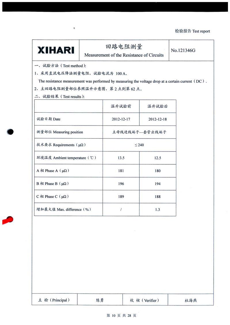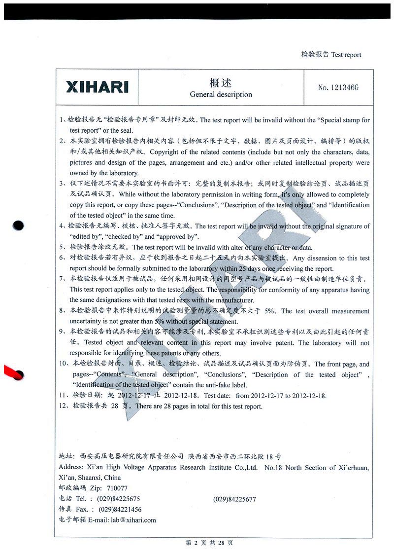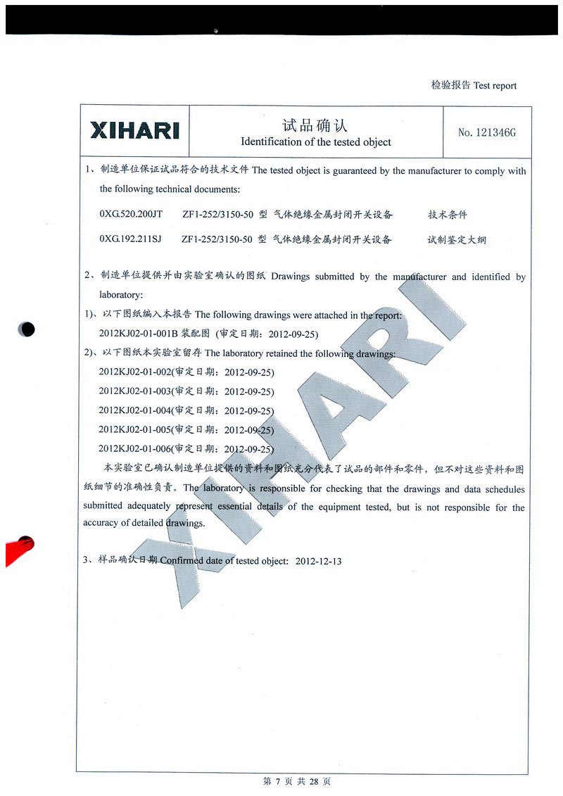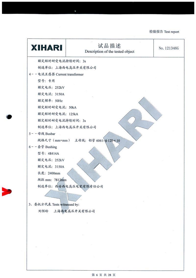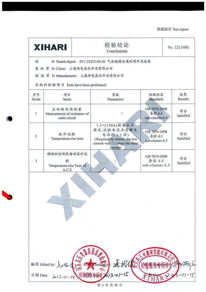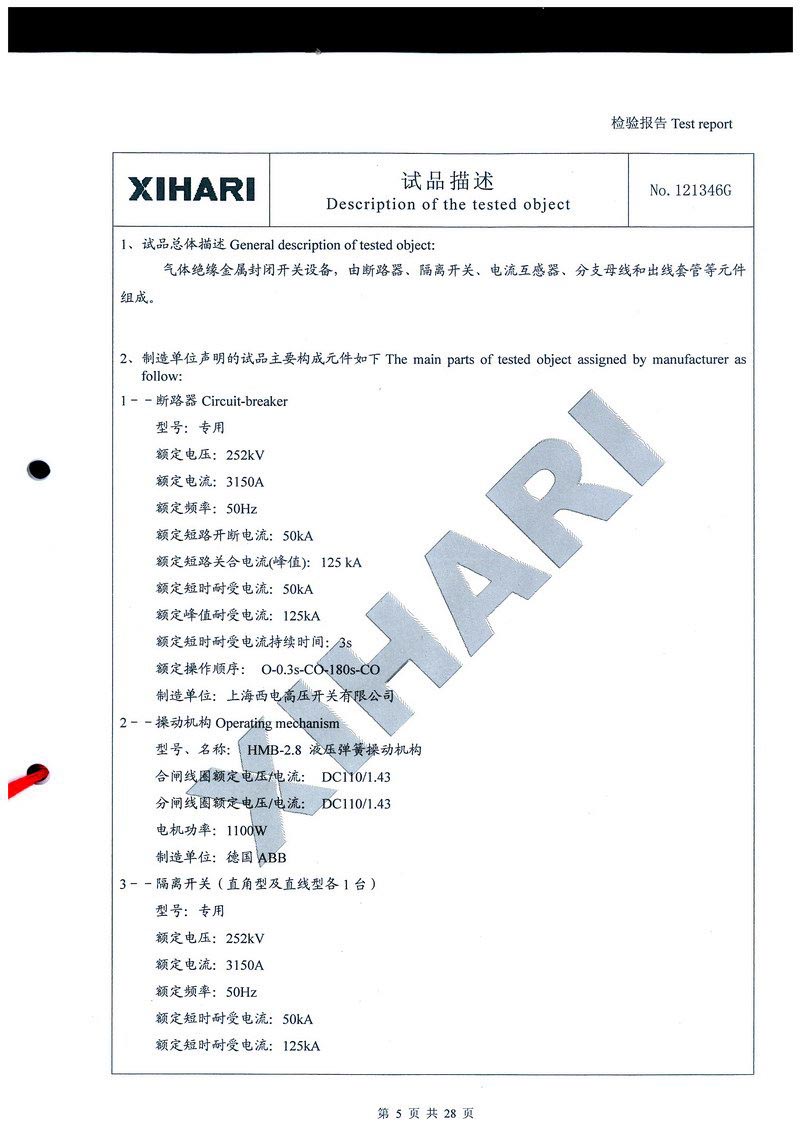 ZF1-252T3150-50 氣體絕緣金屬封閉開關設備檢驗報告